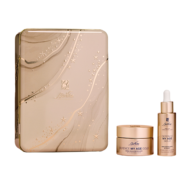La collezione natalizia BioNike 2025 interpreta l’essenza del Natale attraverso la purezza dei materiali e la cura dei dettagli: sette cofanetti in latta, ispirati alla solidità del marmo e alla poesia dorata del kintsugi. Linee essenziali, giochi di luce e sfumature delicate li rendono veri oggetti da custodire, fatti per durare nel tempo e continuare a raccontare la loro storia anche dopo le feste. Il cofanetto Defence My Age Gold, per esempio, è pensato per rivitalizzare e rinforzare la pelle matura delle donne over 60.