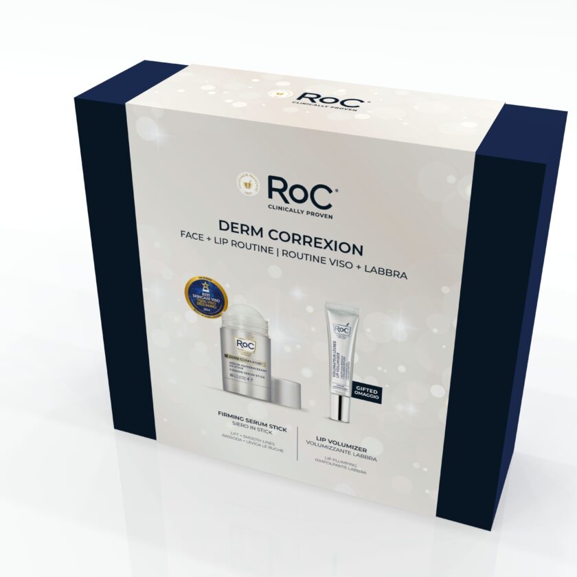 RoC Skincare propone tre coffret con trattamenti anti-age di alta qualità, pensati anche per le pelli sensibili. Derm Correction Gift Set contiene Derm Correxion Serum Stick 30 Full Size e in omaggio Lip Volumizer da 10 ml. Sviluppato in collaborazione con dermatologi e medici estetici, Derm Correxion Serum Stick è formulato per liftare, donare compattezza alla pelle e levigare i segni d’espressione istantaneamente e nel tempo. Agisce in modo mirato su viso, collo, dècolletè e dorso delle mani grazie al suo applicatore smart, la sua formula è a rapido assorbimento e arricchita con MicroFirm THPE per liftare e aumentare la compattezza della pelle del 180%, mentre il puro Retinolo RoC viene rilasciato gradualmente per stimolare l’elasticità e ridurre le rughe per un aspetto naturalmente più giovane