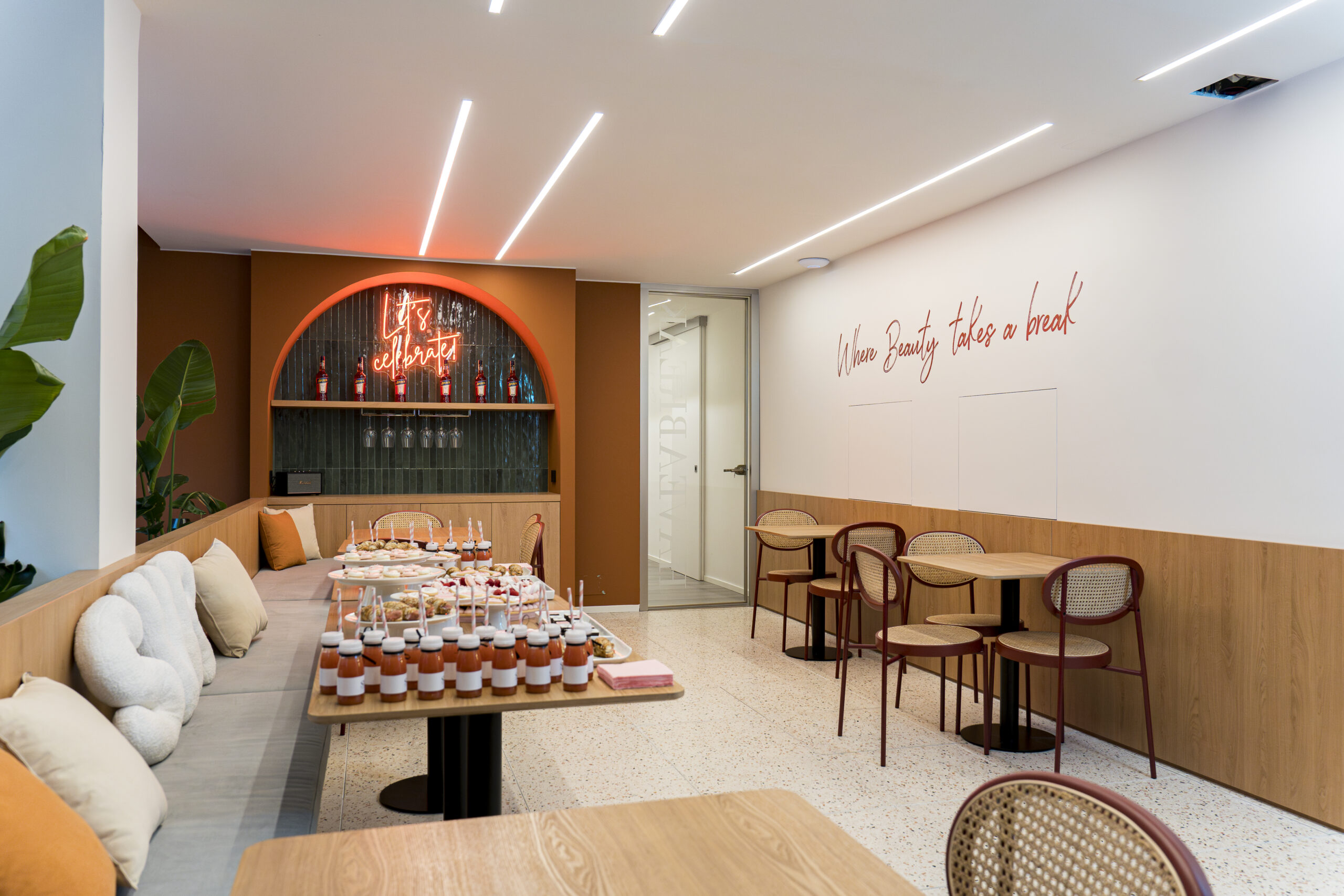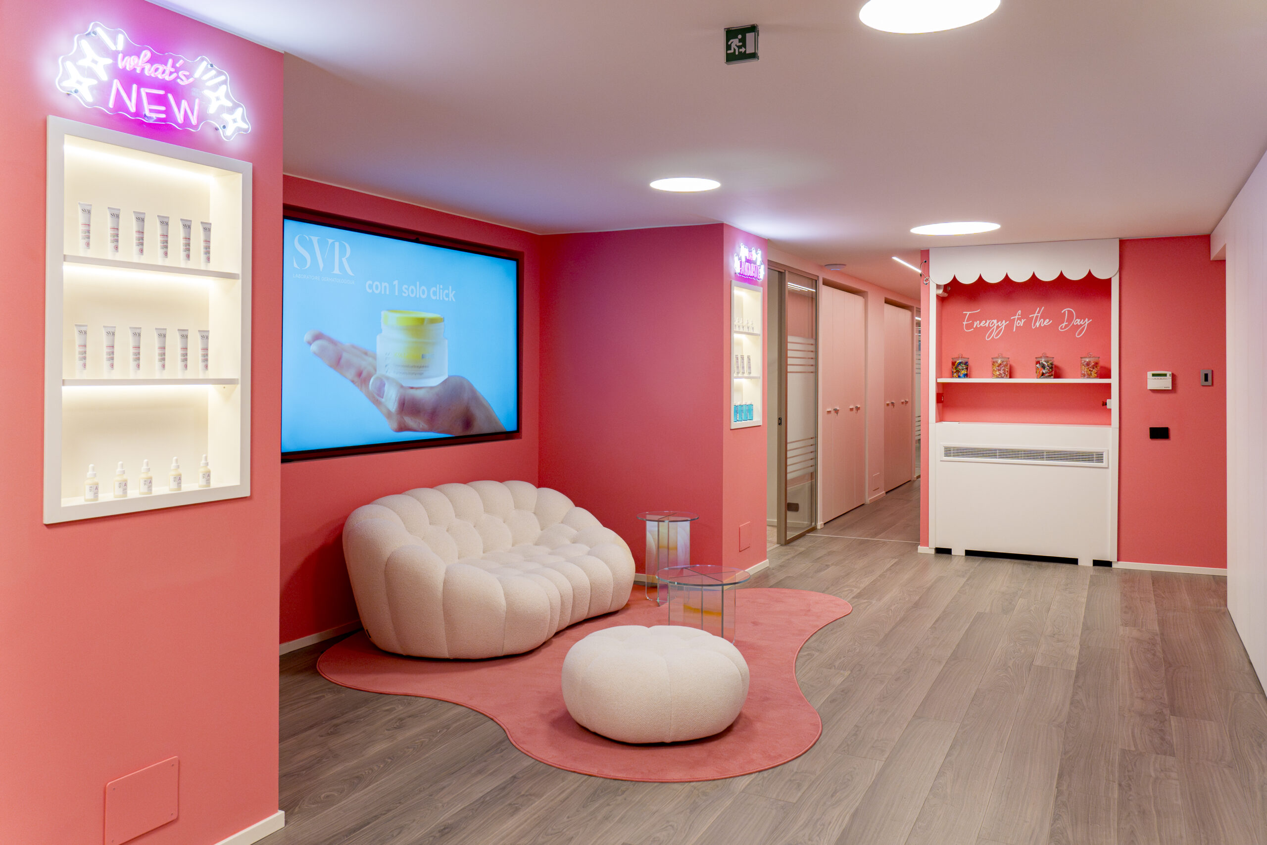 Il benessere dei collaboratori è al centro del progetto. Aree relax, spazi comuni e un layout funzionale sono stati pensati per migliorare comfort, qualità del lavoro e collaborazione. Dalla sala creativa al Vitamin Bar, passando per il Celebration Corner e la Beauty Gallery, ogni ambiente stimola creatività, condivisione e good vibes, riflettendo l’energia e la cultura del brand.
